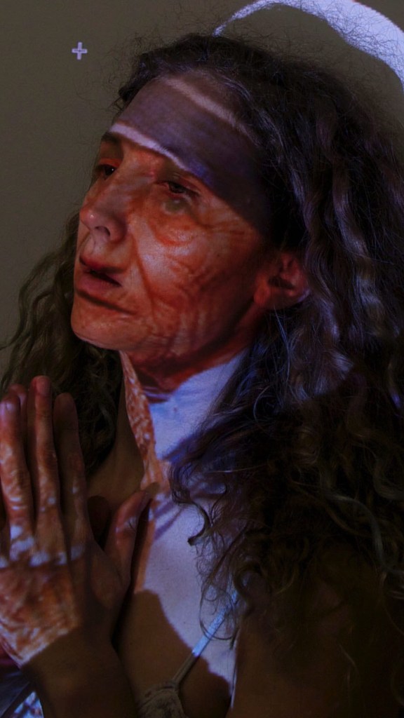 Copyright free images of Katy Perry and John Waters, overlay analog projections onto actors’ faces , dialogue by artist – Natalie Serovy aka Natalka