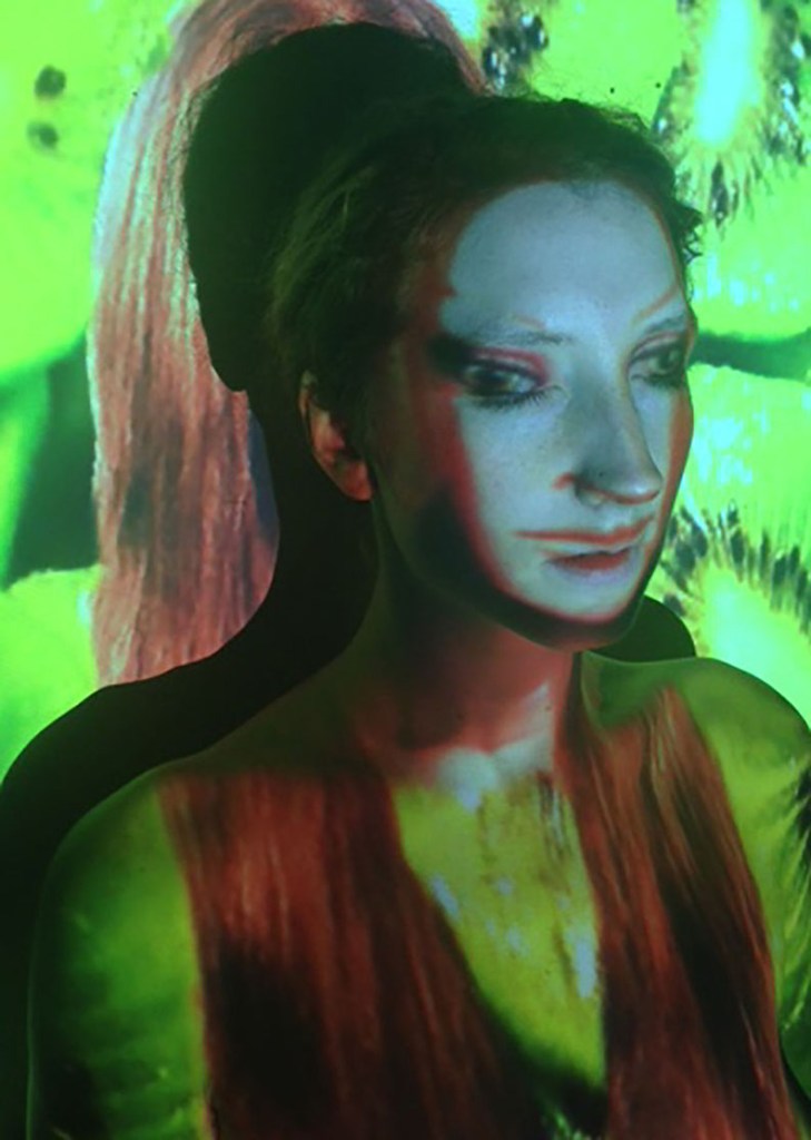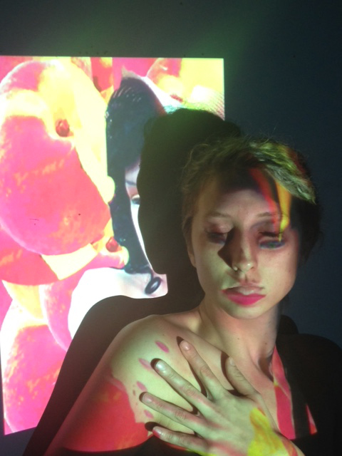Sweet Fruit Dolls 2014 projections of mannequins over artist as model, re saved and downloaded a zillion times, originally shot on Cannon EOS 5D Mark IV